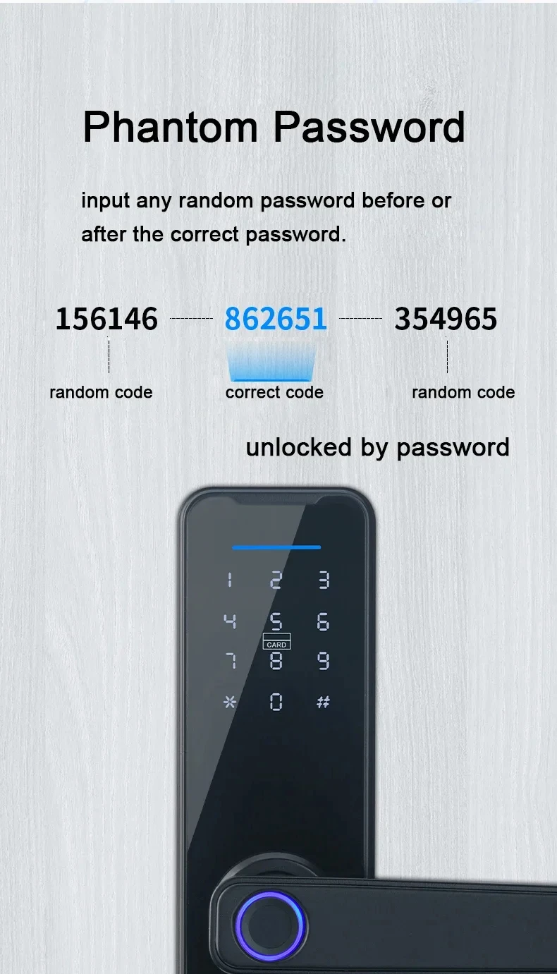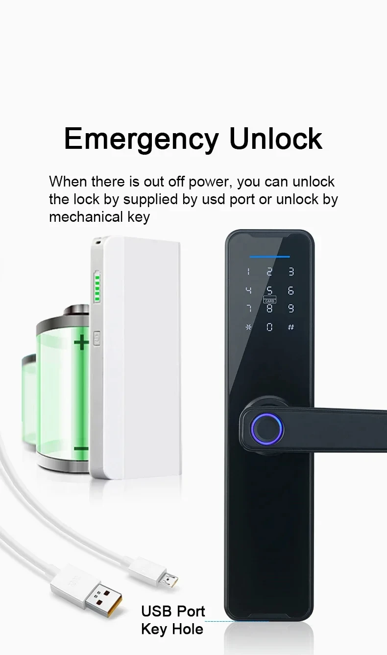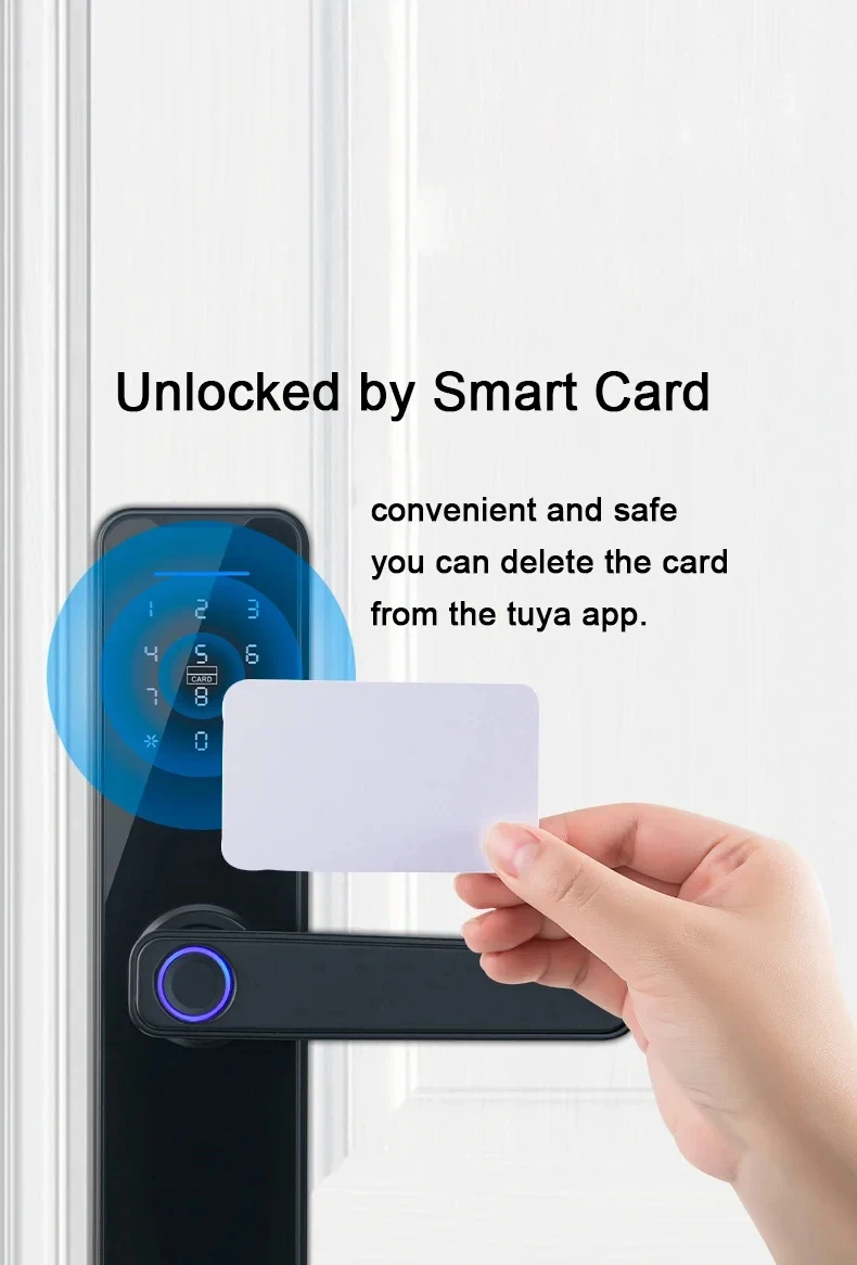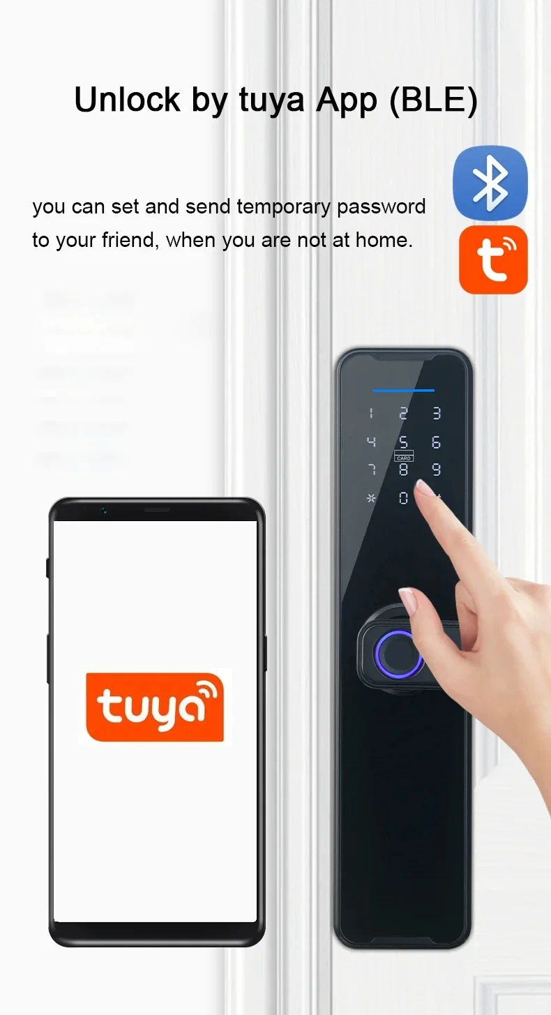 You can not only unlock the door with your fingerprint, card, key or the code you set, but also can open the