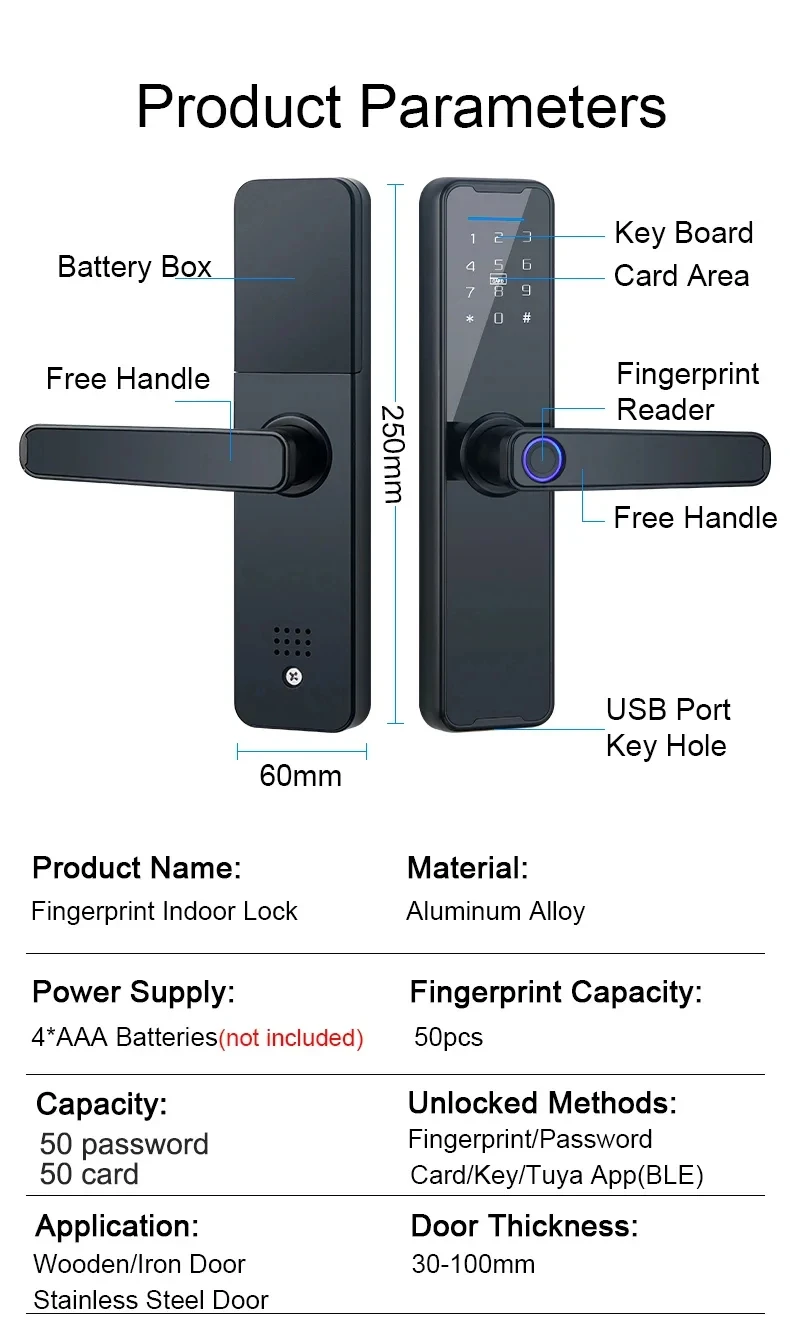 • Ways To Unlock: App,Bluetooth,Mechanical Keys,Password,FINGERPRINT