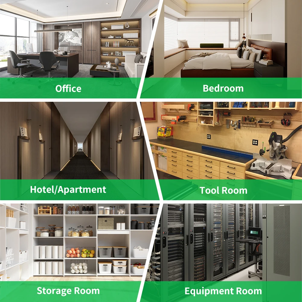7.Not only does it provide secure and convenient access control for public or high-traffic areas such as offices, hotels, and apartments, but it is also perfectly suited for private and functional spaces like bedrooms, tool rooms, storage areas, and equipment rooms where privacy and property security are paramount.