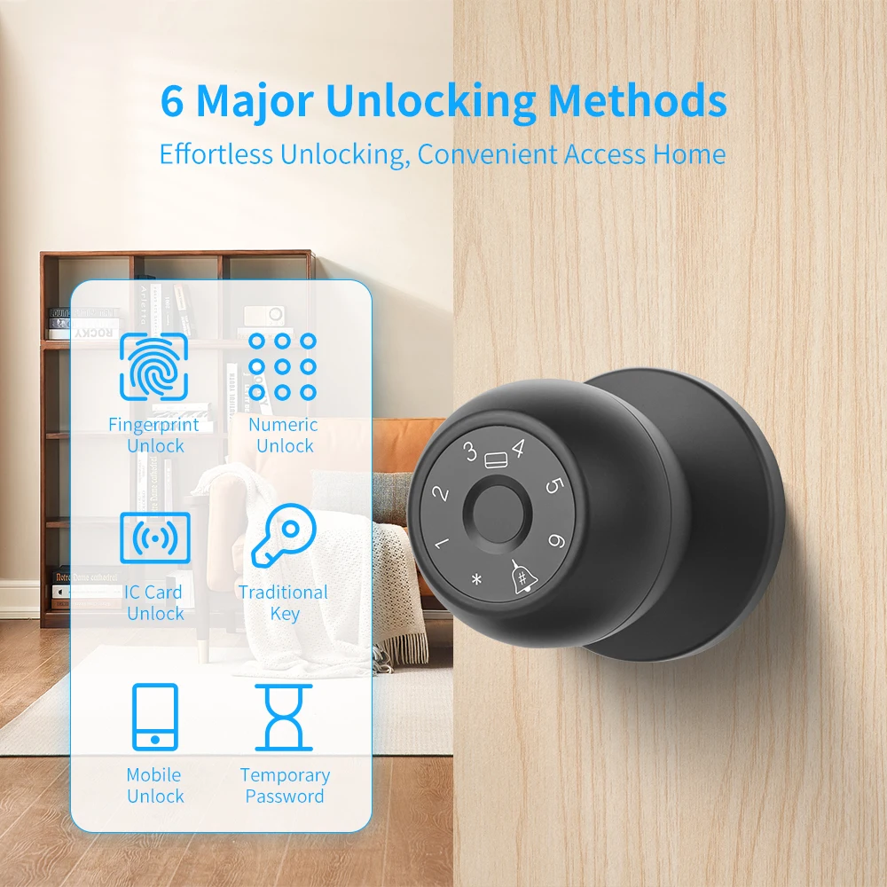 Tuya Smart Spherical Lock Fingerprint Password IC Card Unlock Smart Life Home Bedroom Electronic Lock For Family Office