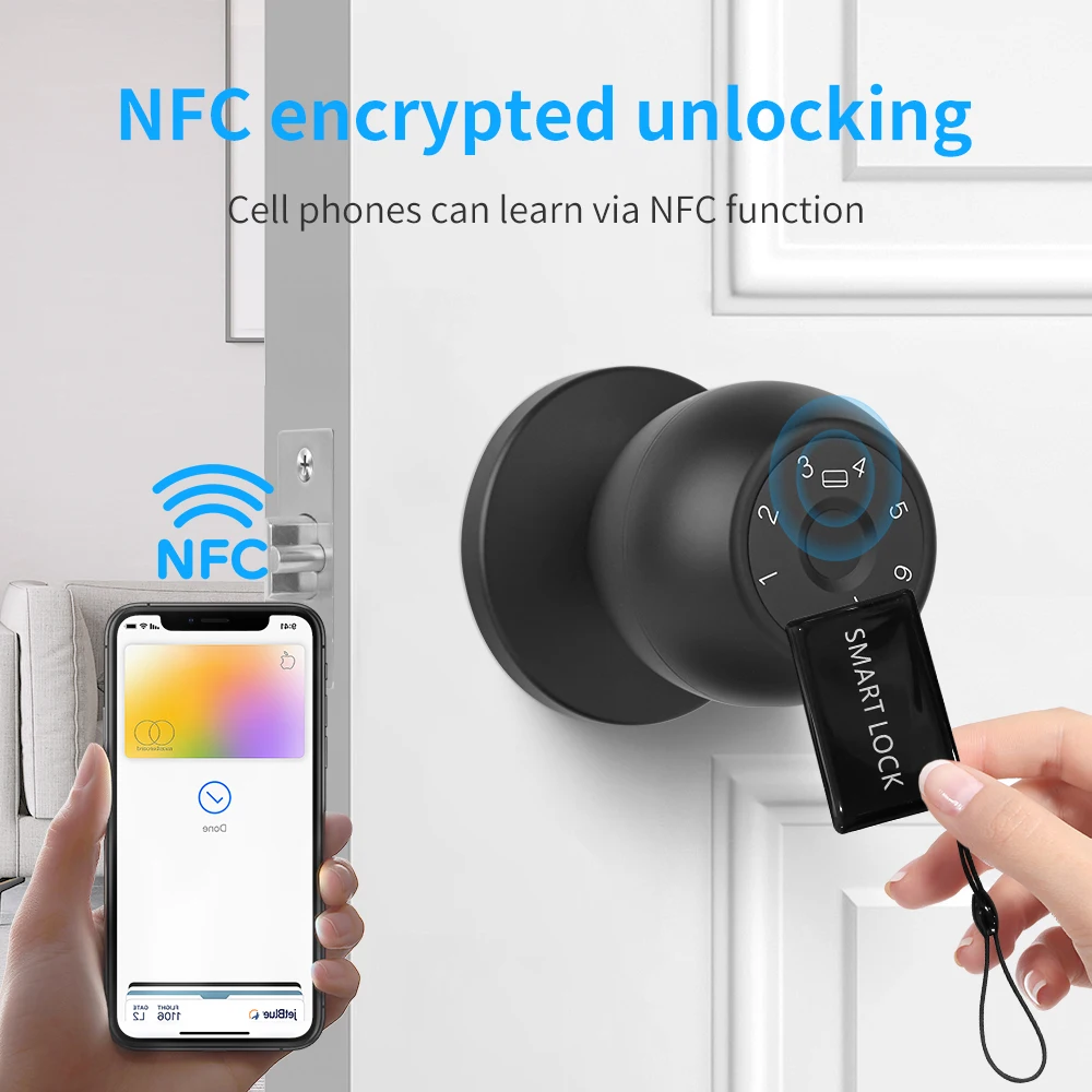 2.Supports NFC encrypted unlocking functionality, enabling users to quickly and securely pair and learn unlocking commands via their mobile phone's NFC. Leveraging near-field communication technology enhances the convenience and security of smart lock usage, delivering efficient and reliable access control.