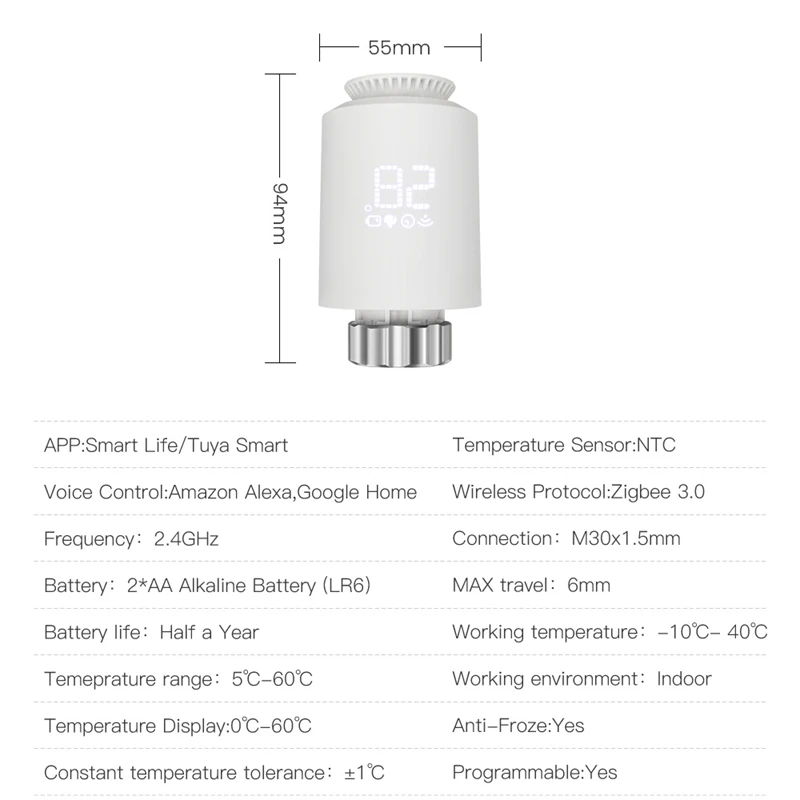 Tuya ZigBee Radiator Actuator Thermostat Smart TRV Thermostatic Valve Temperature Controller Support Alexa Google Home