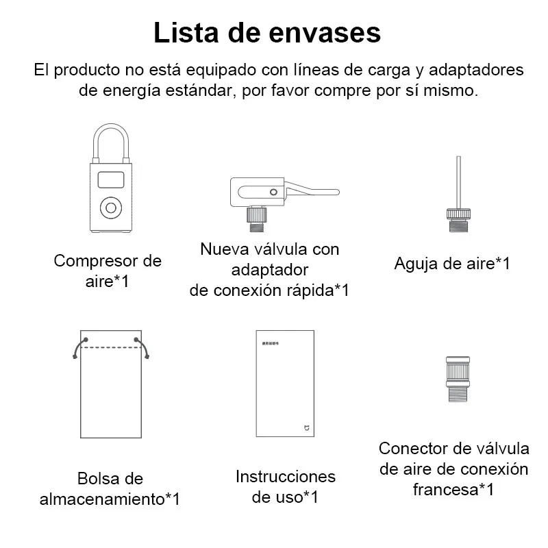 * Xiaomi Mijia Portable Electric Air Compressor 2/2D does not come with a power adapter as standard.