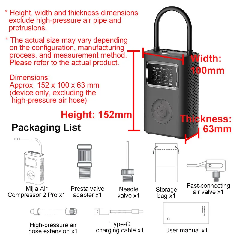 • Model Number: Xiaomi Mijia Portable Electric Air Compressor 2/2D/2 Pro