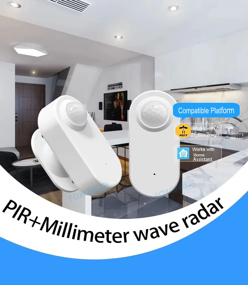Zigbee Human Presence Detector,Luminance/Distance Detection, Smart PIR Motion Sensor Support Zigbee 2mqtt Home Assistant
